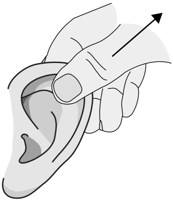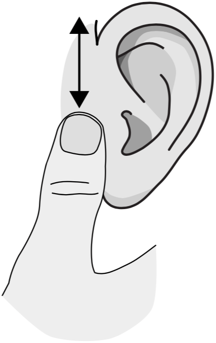 Pull the edge of the ear out- wards, starting from the where the ear connects to the scalp at the top and following it all the way down, stretching out the cartilage.