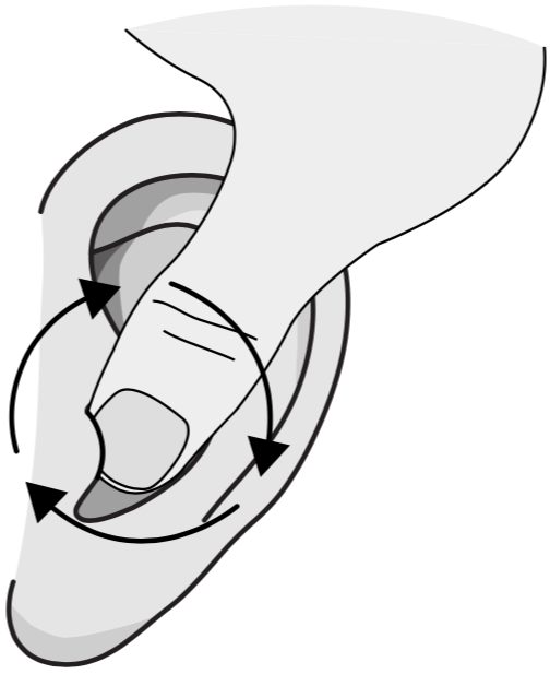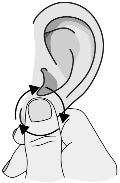 Keeping your index finger still, massage the lobe in circular motions. This can be done whilst gently pulling the lobe down. The ear should stretch out, opening up the ear canal.